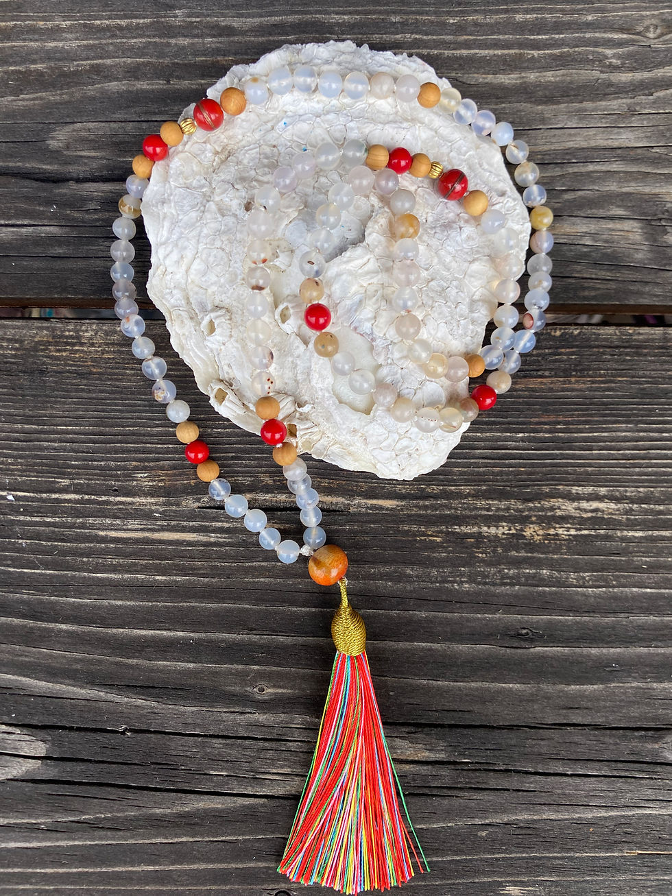 Liebe Veemala, die drei Malas, die ich von dir habe, sind mir inzwischen zu liebevollen Begleiterinnen geworden. Und selbst wenn ich sie nicht trage, erfüllt es mich mit so viel Freude, sie durch meine Hände gleiten zu lassen und mich an ihrem wunderschönen Farbspiel zu erfreuen.